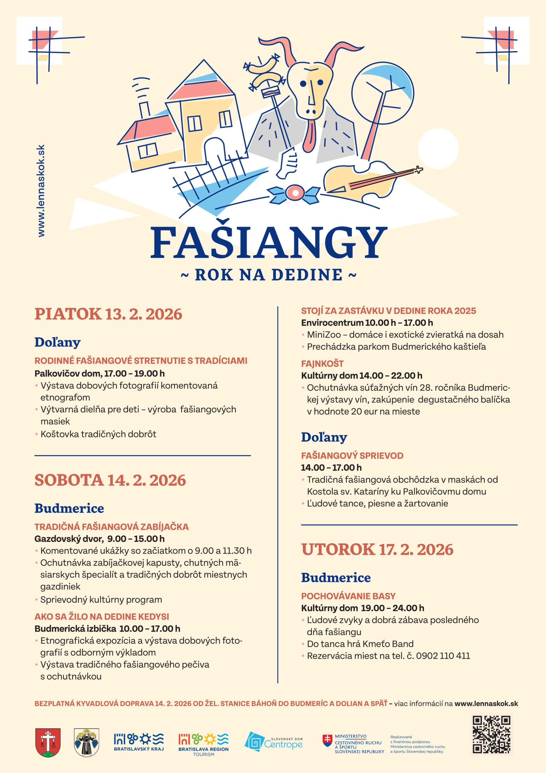 Prijmite pozvanie do Budmeríc - Dediny roka 2025, Dolian, či iných malebných miest nášho regiónu a vyberte si podľa vlastnej chuti, na ktorom z podujatí chcete zažiť pravú atmosféru fašiangov. Všade je to len na skok.